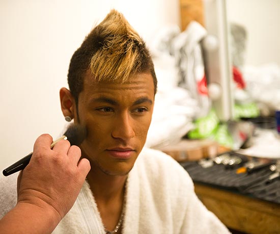 Neymar teve que passar por uma maquiagem na barriga para aparecer com um 'tanquinho' mais bem definido em um comercial de meias e cuecas.